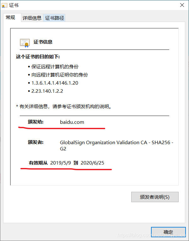 如图所示为百度服务器的证书: