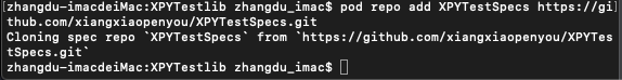 pod repo add XPYTestSpecs https://github.com/xiangxiaopenyou/XPYTestSpecs.git