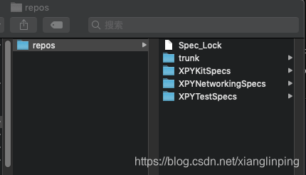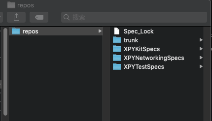 完成以后前往~/.cocoapods/repo文件夹会发现多了XPYTestSpecs库