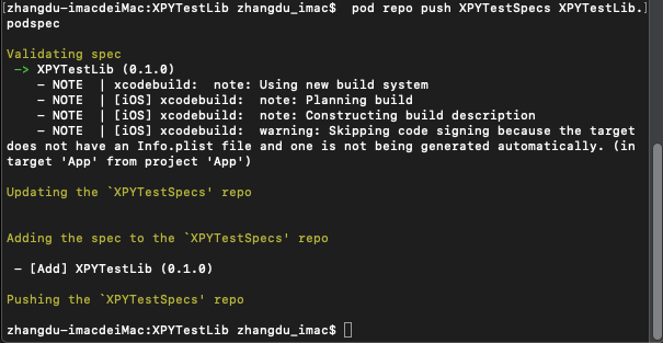 pod repo push XPYTestSpecs XPYTestLib.podspec