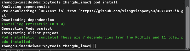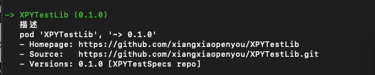 整个私有库创建过程就完成了,这时就可以执行pod search XPYTestLib查看你的私有库了
