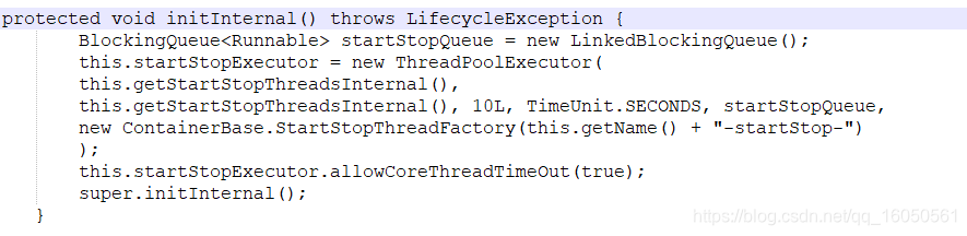 ContainerBase是Container的基础实现类,initInternal方法主要初始化ThreadPoolExecutor类型的startStopExecutor属性,用于管理启动和关闭的线程.