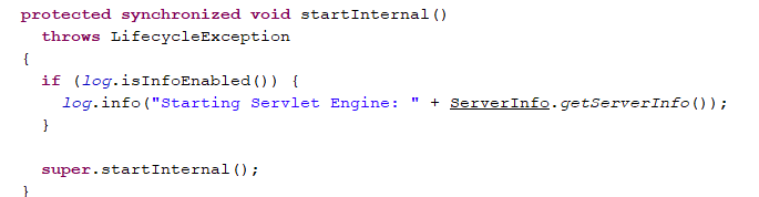 Service会调用最顶层容器的init和start方法,如果使用了Engine就会调用Engine的。Engine的默认实现类StandardEngine中的initInternal和startInternal方法。