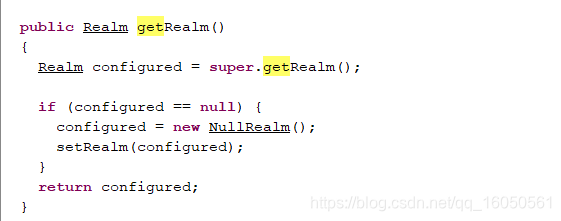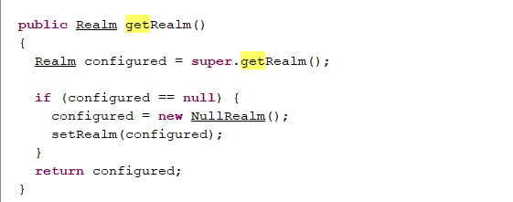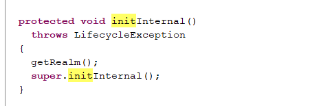 它们分别调用了ContainerBase中的相应方法,initInternal方法还调用了getRealm方法,其作用是如果没有配置Realm,则使用一个默认的NullRealm,代码如下: