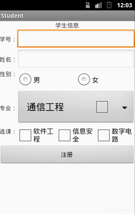 首先,是UI界面,会用到TextView(文本框)、EditText(编辑框)、RadioButton(单选按钮)、spinner下拉框、CheckBox(复选框)以及Button(按钮)等控件。