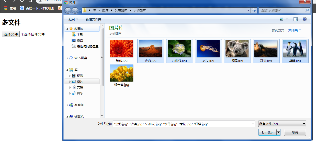 HTML部分: (要注意的是 type ="file" 这个input中要加入 multipe 才可以哦)