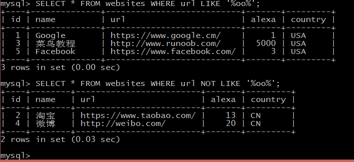 LIKE 操作符用于在 WHERE 子句中搜索列中的指定模式
