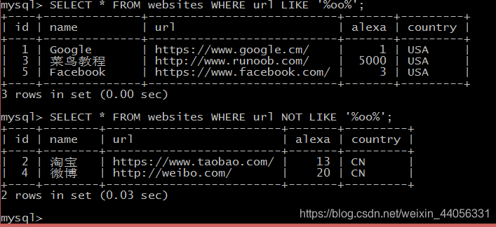 MySQL 中使用 REGEXP 或 NOT REGEXP 运算符 (或 RLIKE 和 NOT RLIKE) 来操作正则表达式。