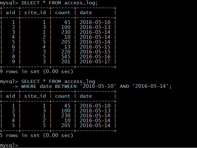 BETWEEN 日期