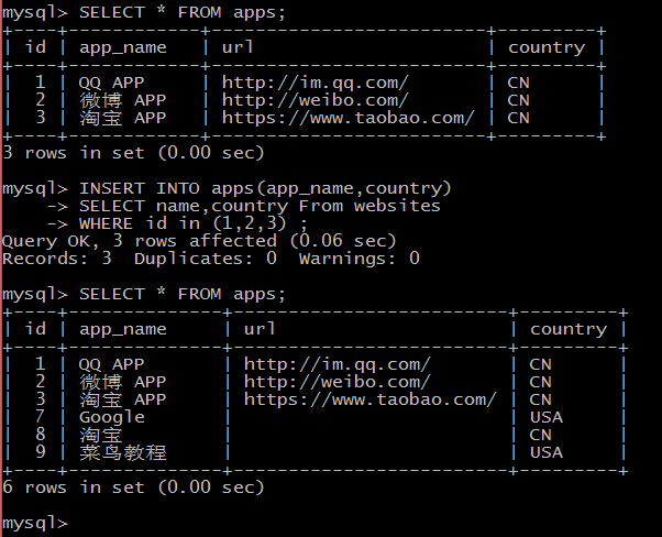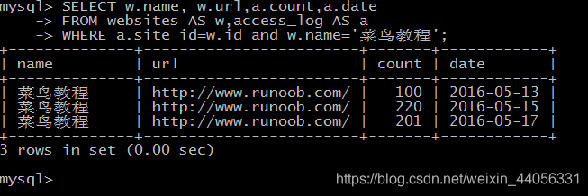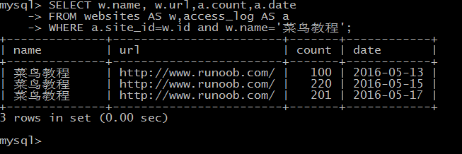 练习菜鸟教程中sql高级教程。记录如下: