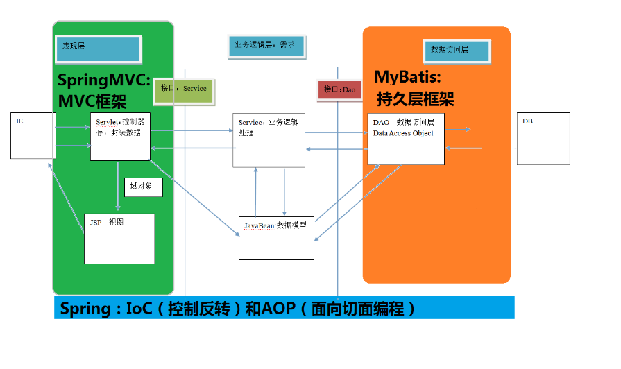1.什么是框架? 2.三层架构 3. 3.1mybatis是持久层框架,与数据库交互增删改查操作 3.2spring不属于任何一层,几乎无可替代的 3.3springMvc是表现层框架,不同的框架各司其职 来源:CSDN作者:蝶衣_疯魔链接:https://blog.csdn.net/shujuku____/article/details/103926253 标签 三层架构