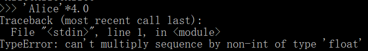 (1) * 操作符用于一个字符串 值和一个整型值时,它变成了“字符串复制”操作符。*操作符只能用于两个数字, 或一个字符串和一个整型(作为字符串复制操作符).否则,Python 将显示错误信息。