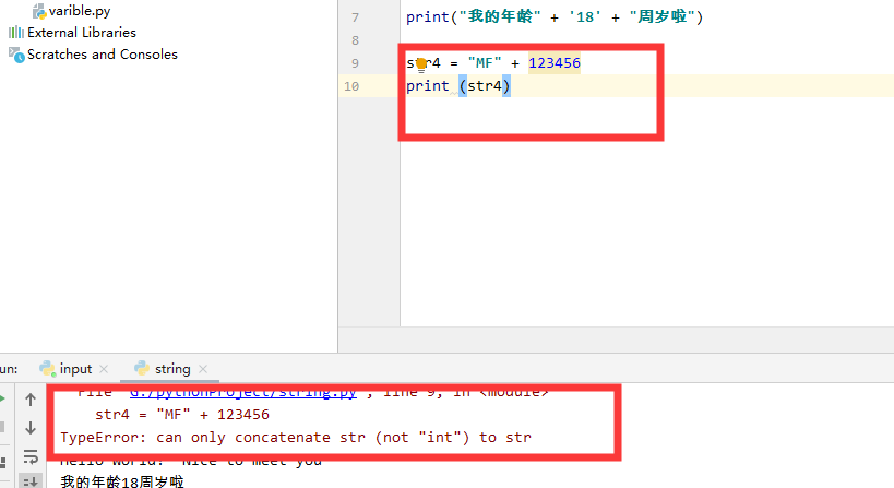注意:在字符串拼接的时候使用数字 要 通过 str 把数字转换为字符串