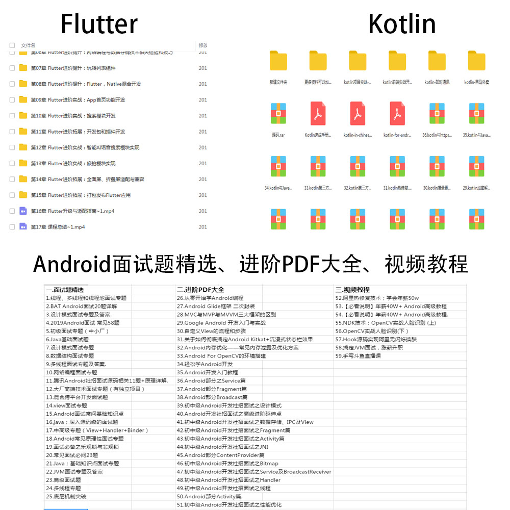 flutter现在已经逐渐变成了主流的混合开发框架,另外由于阿里系的强大存在,导致阿里 系的公司都在用Weex混合架构,这些都是一个Android工程师开拓视野,走向未来必不可少的基本技能