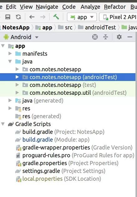 3. UI测试我们可以利用UI测试活动的启动是否正确,或视图的存在是否正确。Espresso和UI Automater 是UI测试中广泛使用的工具。以下是应用当前所包含测试的软件包结构。