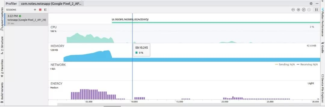 虽然我们有各种的分析器,例如CPU分析器、内存分析器、网络分析器和能耗分析器。但 Android Profiler 可以兼容Android 5.0(API级别21)及更高版本。
