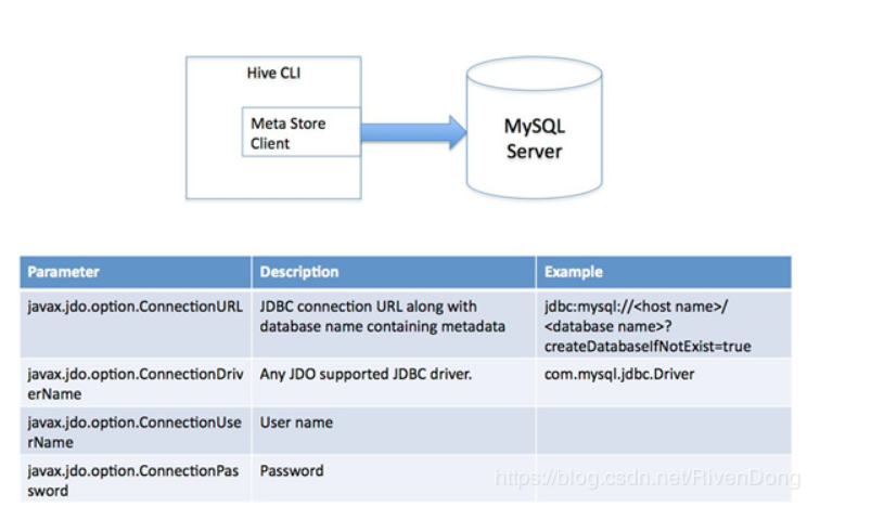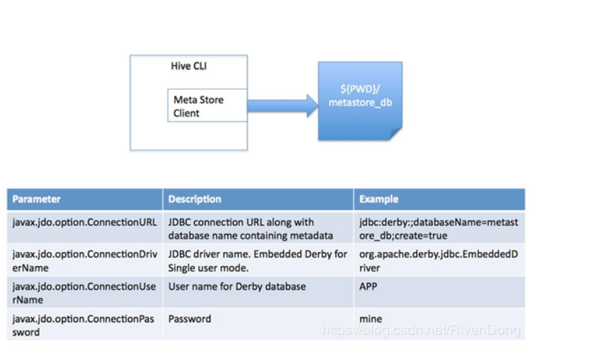 Hive将元数据存储在RDBMS中,有三种模式可以连接到数据库。