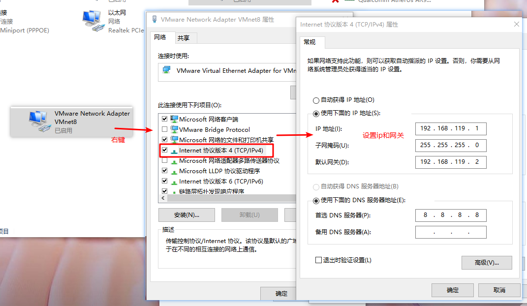 5、设置网络适配器与虚拟机的网段一致