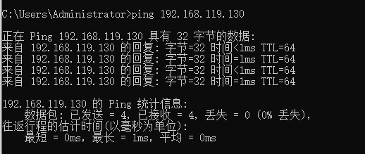 7、这时与虚拟机就可以成功ping通了