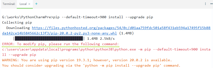 G:\works\PythonCharmPre>python -m pip install --upgrade pip