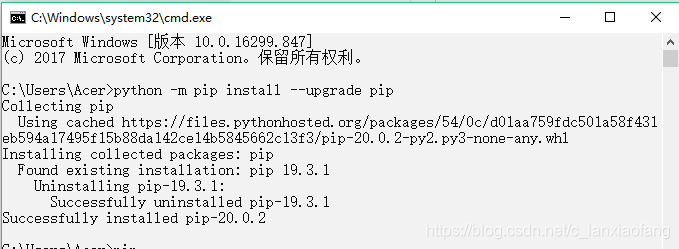 输入 pip list 可以看到pip的版本已经是20.0.2了
