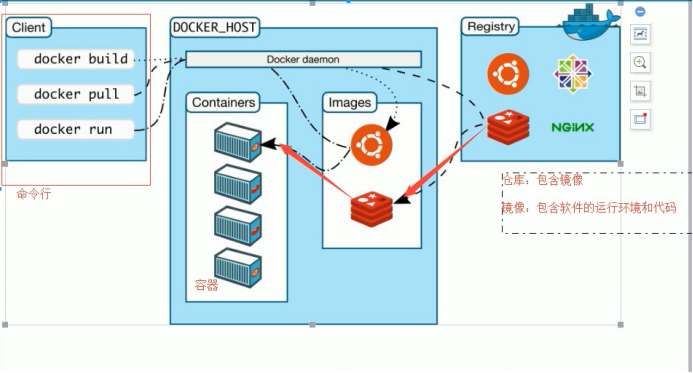 Docker使用C/S架构,通过docker客户端连接到Docker服务器上从而管理Docker服务器里面的镜像和容器,类似于git的架构