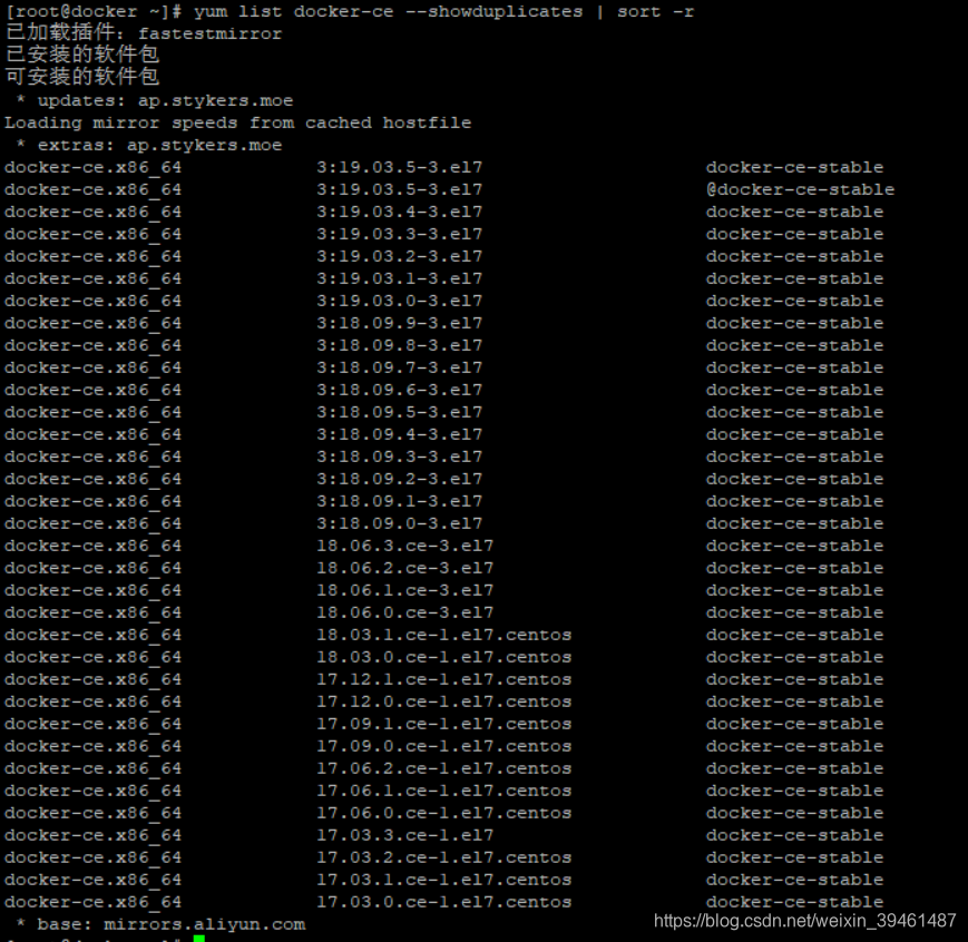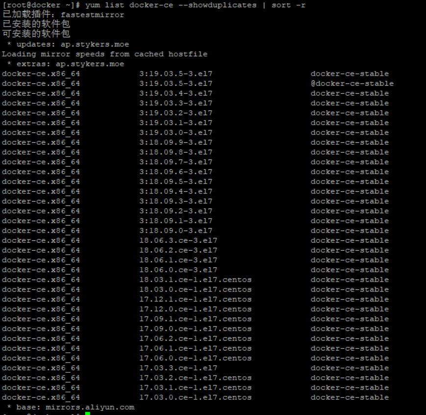 3)可以查看所有仓库中所有docker版本,并选择特定版本安装。