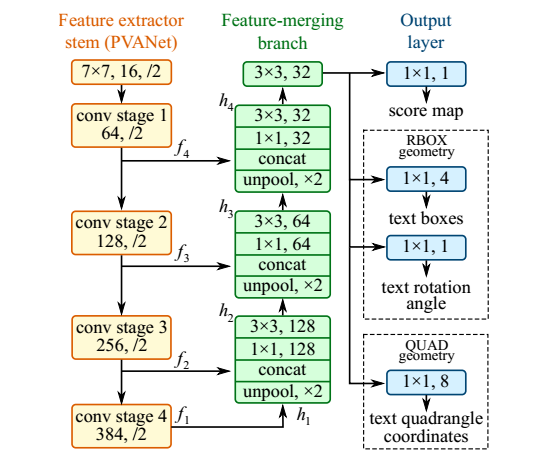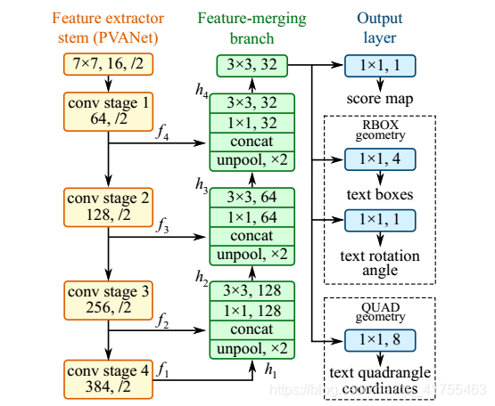 而2017年提出的EAST网络,网络结构如图2-3所示。