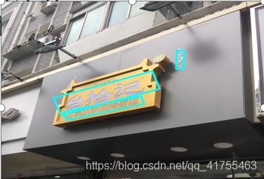 基于上述,可以综合CTPN网络能够准确检测长文本及EAST网络检测倾斜文本(以及 不同尺寸文本)的优势,可以先用CTPN对图像进行文本检测,只保留最大框。并将最大框区域掩膜后的mask图像送入EAST网络中进行检测,定位出招牌中的其余文本。