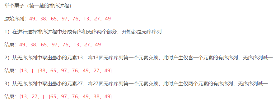 算法思想:选择排序,从头至尾扫描序列,找出最小的一个元素,和第一个元素交换,接着从剩下的元素中继续这种选择和交换方式,最终得到一个有序序列。