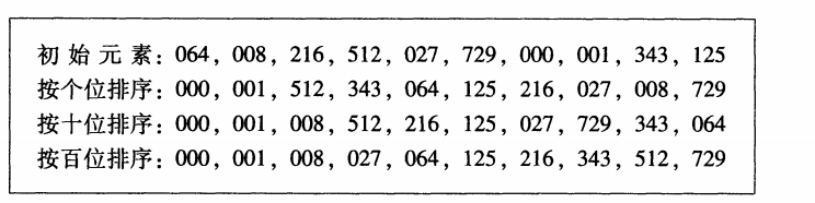 分别按照个位,十位,百位的数字分别插入桶中进行排序。