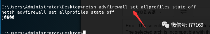 我们使用上边netsh advfirewall set allprofiles state off命令来关闭