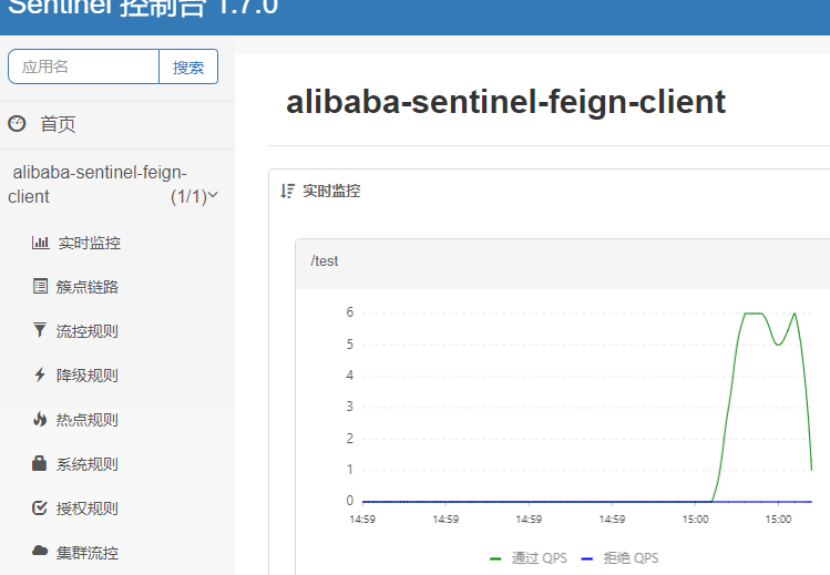 查看实时监控 通过1拒绝1 流控降级成功