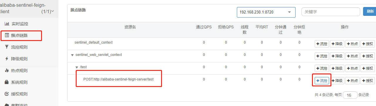 进入簇点链路 找到服务接口 设置流控规则