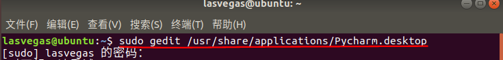 1.启动终端,在命令行输入 sudo gedit /usr/share/applications/Pycharm.desktop