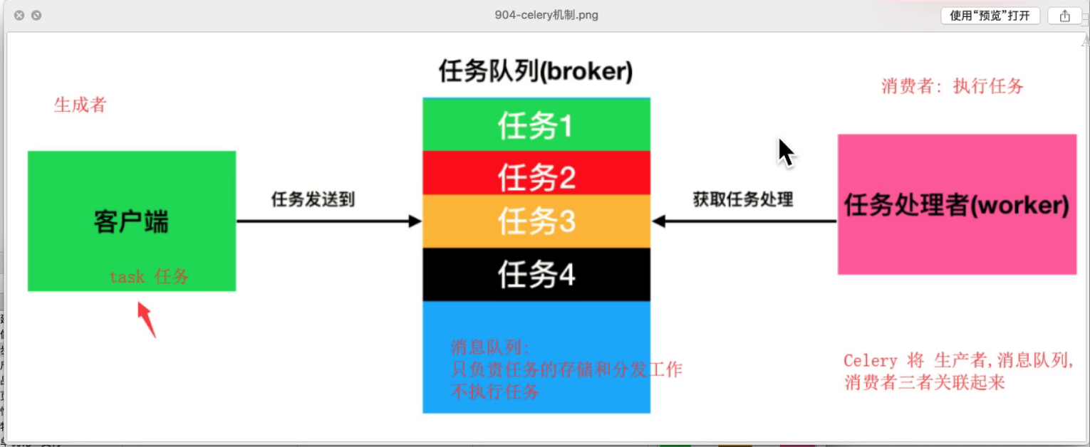 如果是在Windows下, 需要再安装一个包 叫: eventlet pip install eventlet 启动命令后面要加 -P eventlet 否则会报错