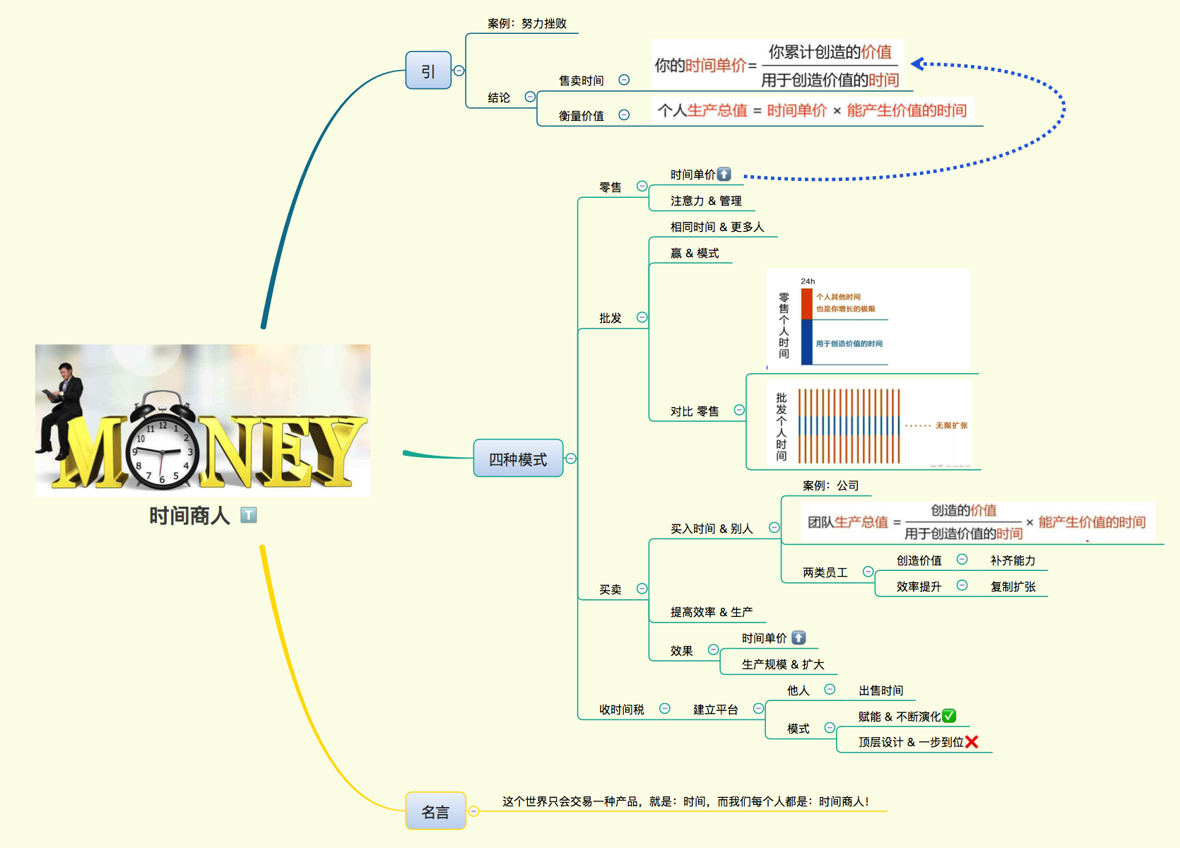 - 买卖时间:本质是个放大器,通过买入别人的时间,来提高自己的效率、提升时间单价、扩大生产规模。