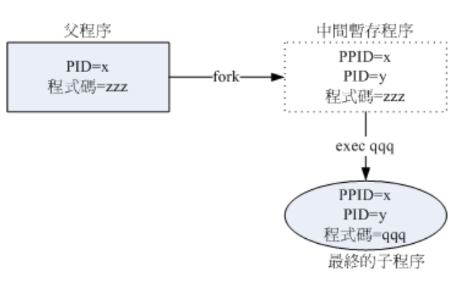 进程都会借由父进程以复制(fork)的方式产生一个一模一样的子进程,然后被复制出来的子进程再以exec的方式来执行实际要执行的进程。