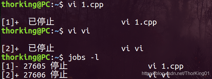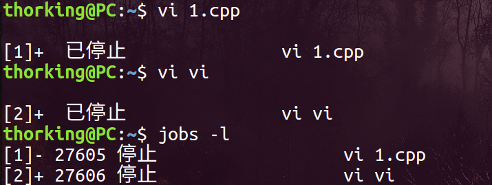 同时暂停两个任务,在任务号码旁边显示+号的表示时最近被放到后台的任务,-表示是最近第二个被放到后台的任务号码。