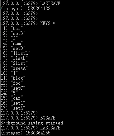 需要手动执行快照时推荐使用BGSAVE命令,BGSAVE命令后可以在后台异步地进行快照操作,快照的同时服务器不受影响,会继续接收来自客户端的请求,使用BGSAVE后redis会立即返回一个OK状态并开始进行快照,这一期间如需知晓快照是否完成,通过LASTSAVE命令获取最近依次成功执行快照的时间,返回结果是一个Unix时间戳: