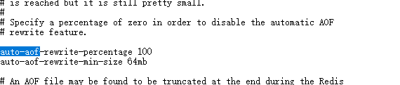 auto-aof-rewrite-percentage 100就是目前的aof文件大小超过上一次重写时的AOF大小多少时会进行重写,
