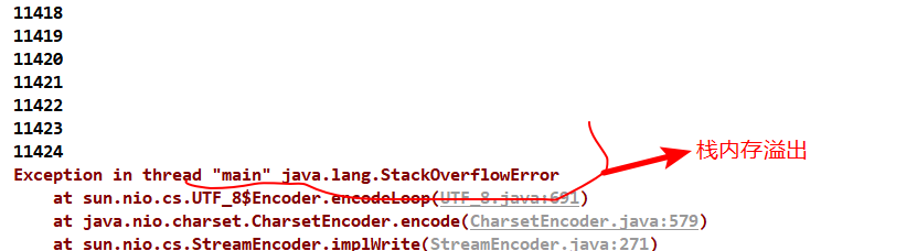 在递归中虽然有限定条件,但是递归次数不能太多,否则也会发生栈内存溢出