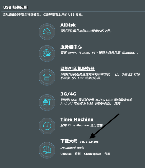 说明一下这个方法不同与网上其它的jffs方法,这个完全用官方的固件、应用 不是梅林系统。