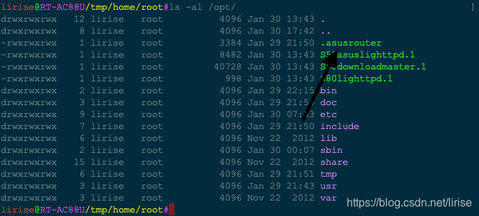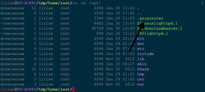 1. /opt/.asusrouter 这个文件不管,系统自带。来看一下