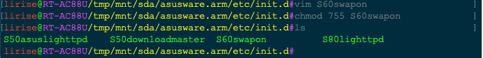2. 第二步我们创建个脚本放到启动目录/opt/etc/init.d/文件名任意我们就叫S60swapon吧。