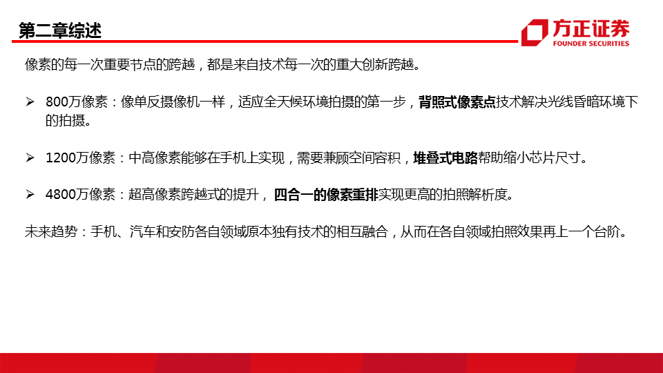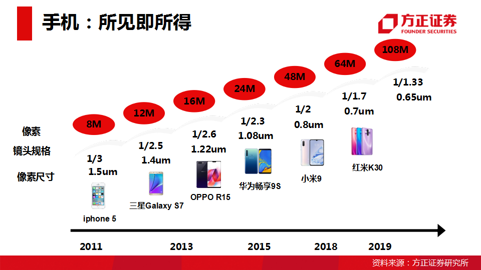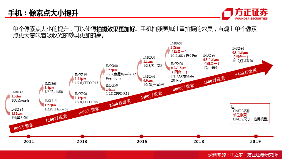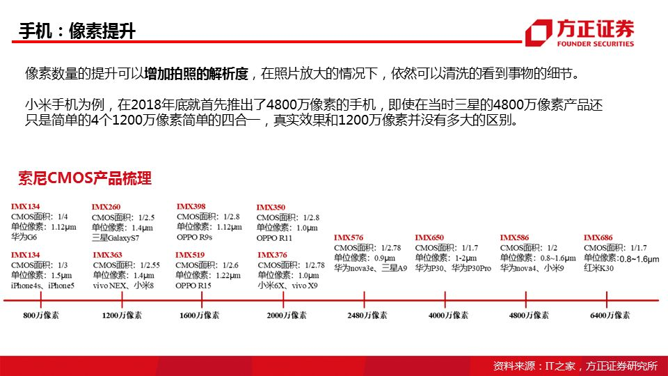 1、高弹性:4800万像素,6400万像素产品切入主摄像头鲜有竞争对手的蓝海市场,产品一旦放量,弹性巨大。
