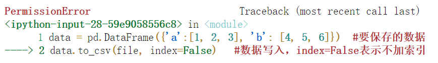 data = pd.DataFrame({'a':[1, 2, 3], 'b': [4, 5, 6]}) #要保存的数据