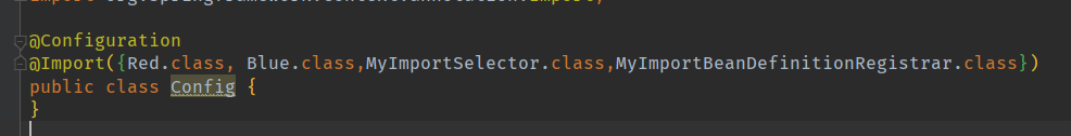 重点来了,会看到一个@import注解,并且指定了一个导入的类,我们点进去,会看到用到了import的第二种方式