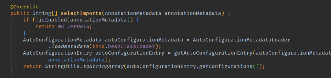 public String[] selectImports(AnnotationMetadata importingClassMetadata) {