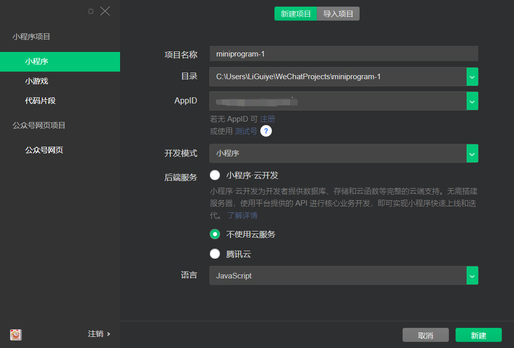 官网下载开发者工具,微信扫码登录后新建小程序项目,并输入之前注册的小程序的AppID(微信公众平台小程序-设置-基本设置-帐号信息-AppID复制)即可得到官方预设的示例程序。根据项目需求根据官方api文档进行开发即可,本文只是给大家展示微信小程序开发流程,暂不进行演示。